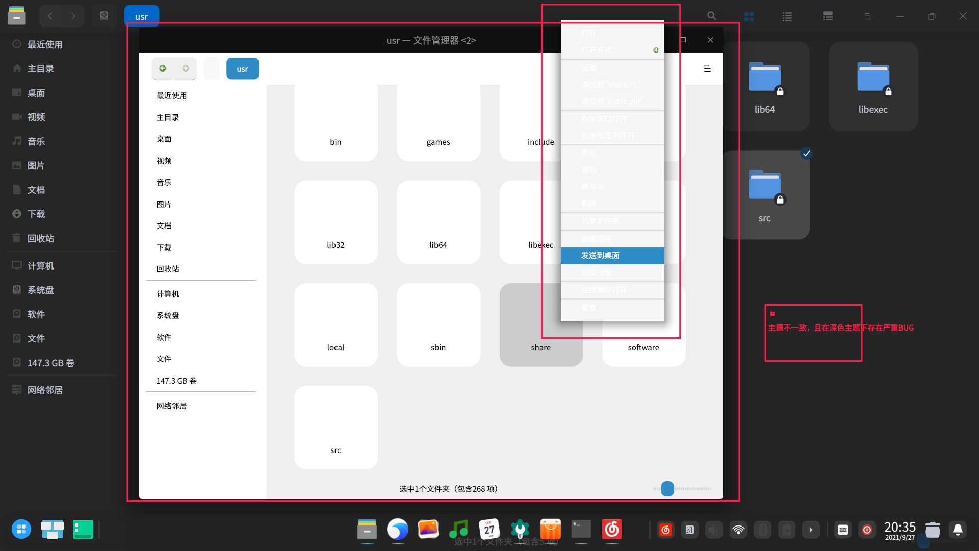 usr文件被锁,以管理员身份运行,出现一下严重BUG,非常影响使用。主题不协调,属性框靚瞎眼。