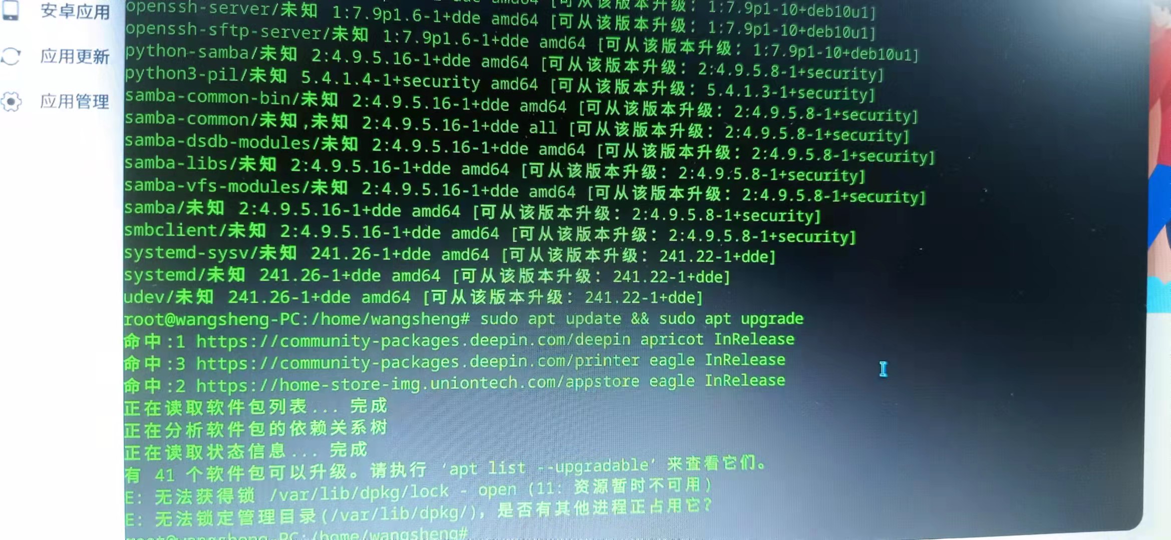 根据提示进行查看更新列表 apt list --upgradable