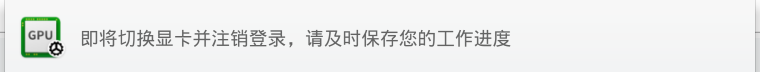 我根据你的帮助安装了软件,但是在任务栏显卡切换插件时,点击切换N卡后,就一直没有动静了。桌面上一直显示着“即将切换显卡并注销登录,请及时保存您的工作进度”提示信息,但是就时不注销。