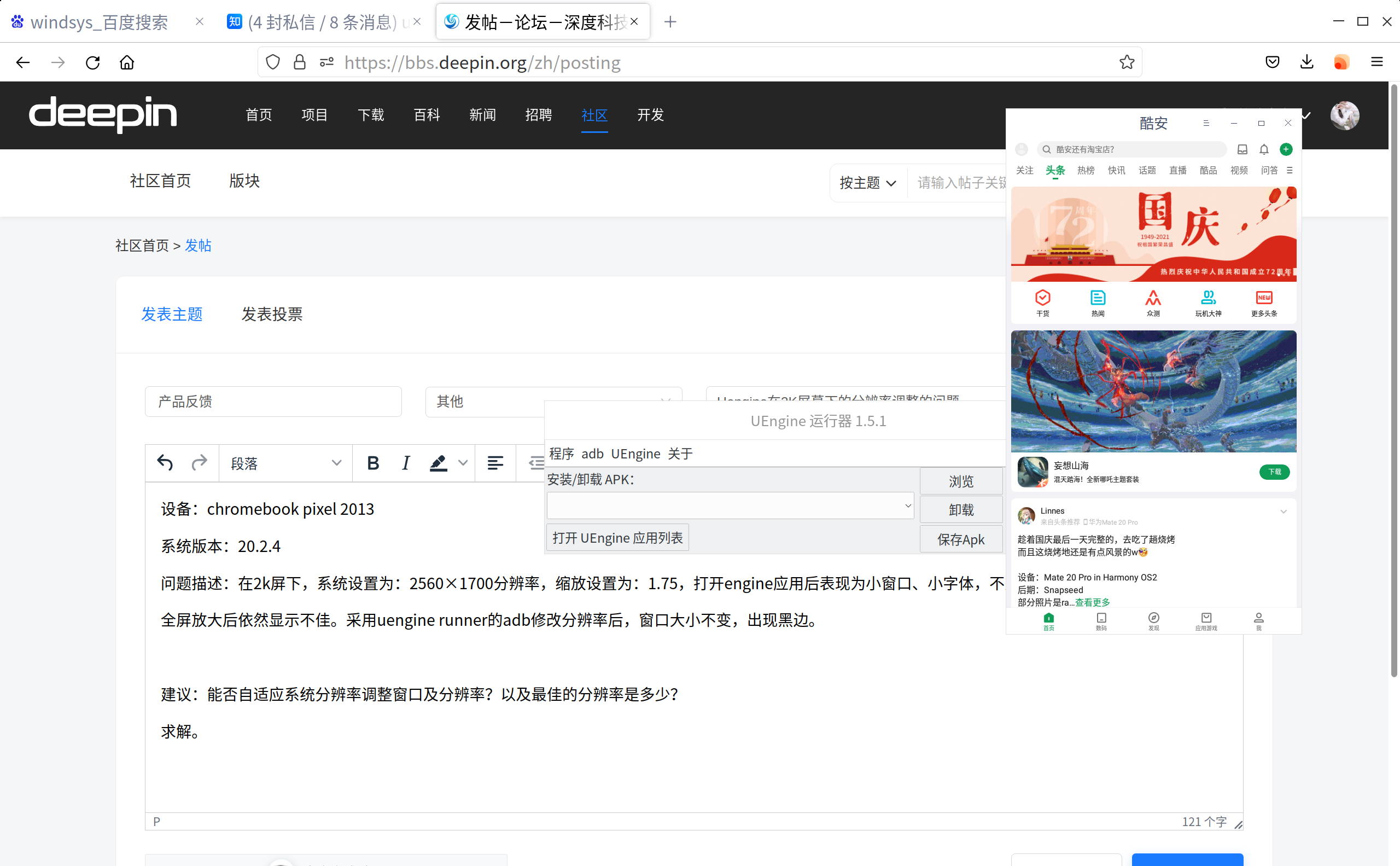 问题描述:在2k屏下,系统设置为:2560×1700分辨率,缩放设置为:1.75,打开engine应用后表现为小窗口、小字体,不支持拉伸,
