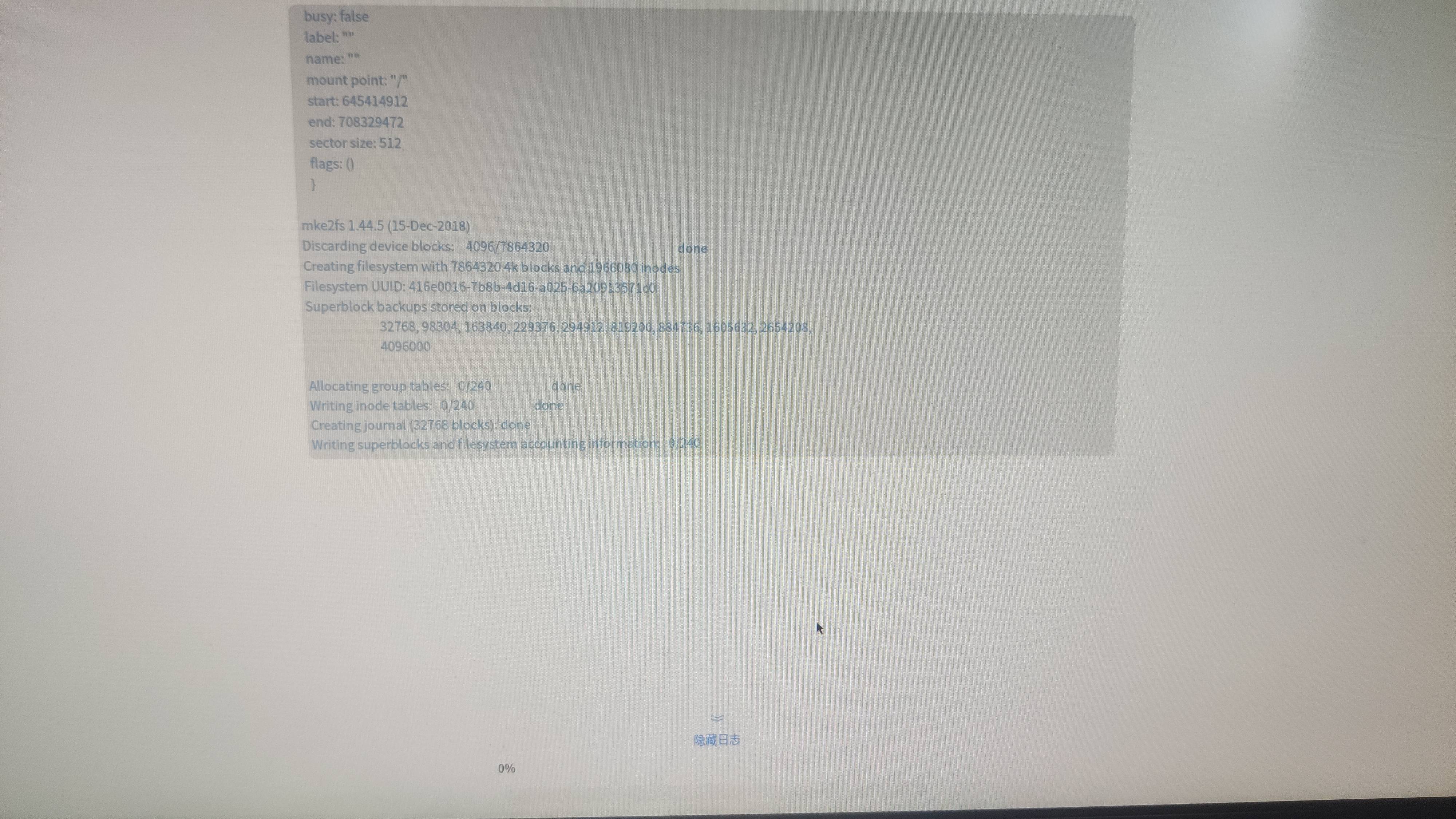 目前遇到的问题就是安装分区选好后下一步一直卡在0%一动不动。