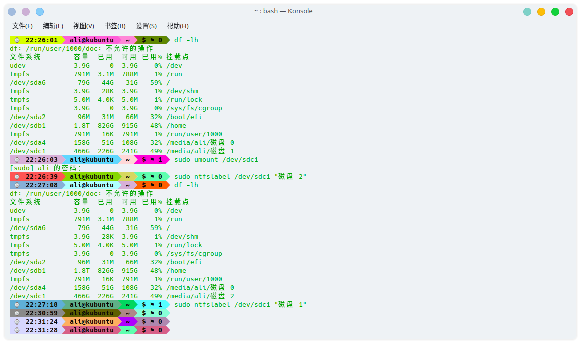 一个固态,一个机械硬盘, deepin如果修改机械盘的挂载路径?我想把下图中的深度软件3改为深度软件, 该如何操作? 直接umount显示占用, 无法操作。