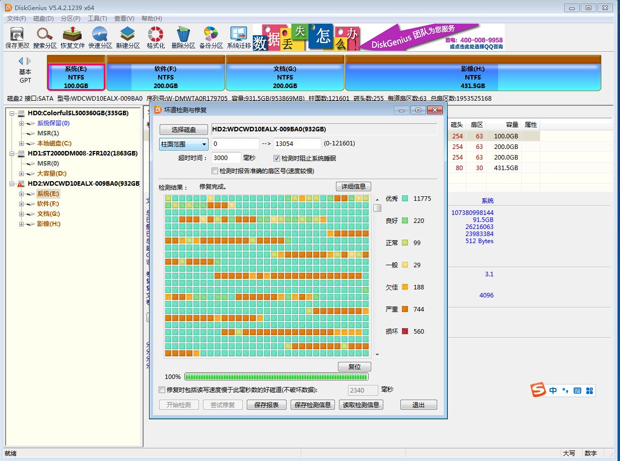 如果是截图显示的这种情况,说明硬盘问题很是严重,你所说的检测好只是检测完成了,强烈建议更换硬盘。