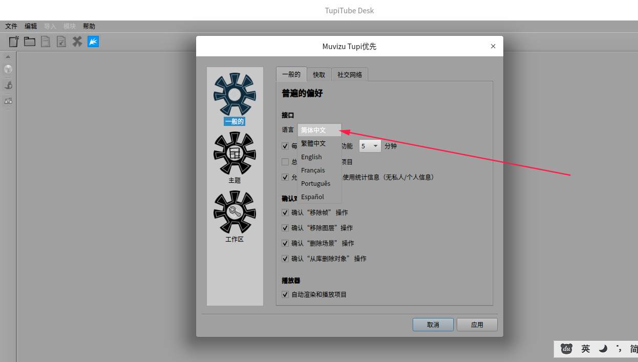 tupitube设置中文方法