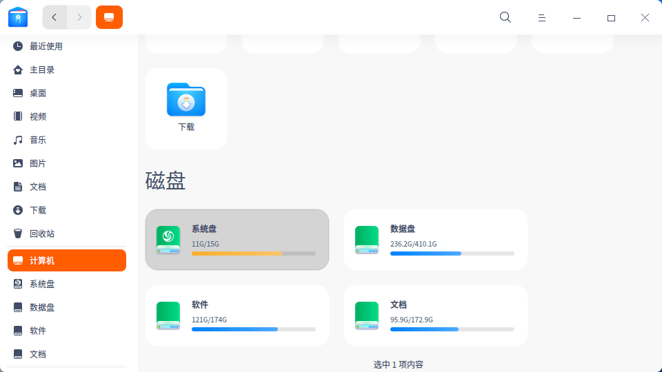 (图中的“软件”、“文档”,是另一硬盘上的NTFS分区,安装Deepin时,没有连接该硬盘,所以全盘自动安装时只针对系统盘和数据盘所在的硬盘)