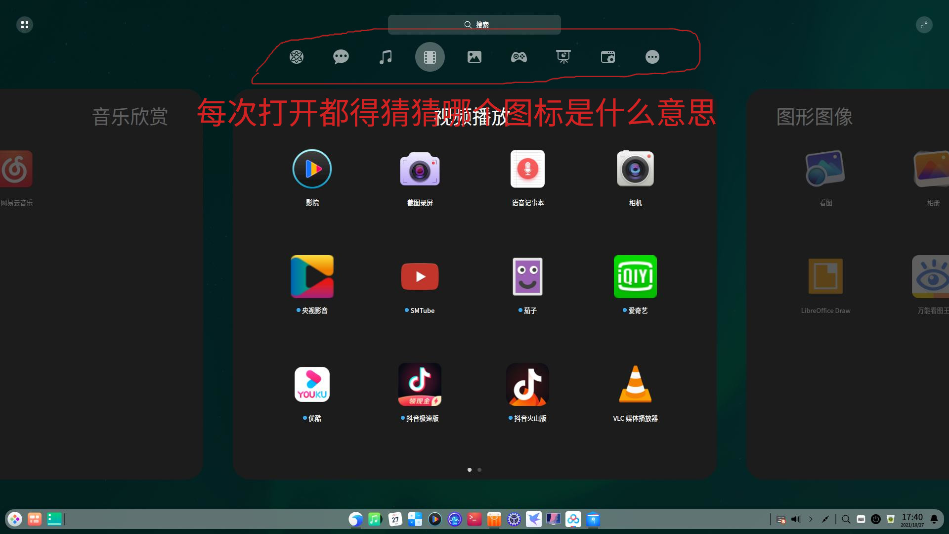 或许可以考虑在每个分类图标上加悬停Tips,就象未全屏展示时那样,如图: