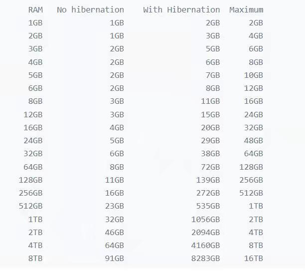 如果你打算让系统休眠(而不仅仅是暂停),这里有关于交换空间大小的建议。