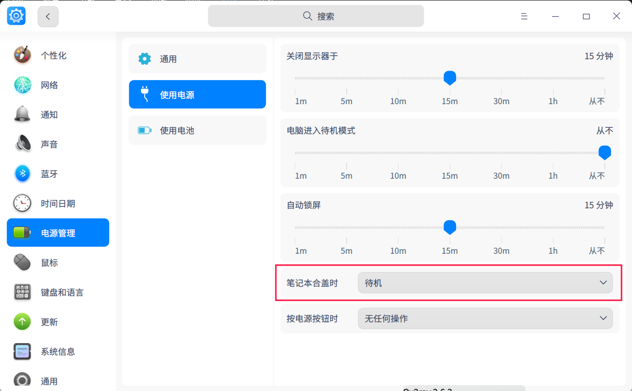 我是笔记本外接显示器使用的,不希望关闭盖子时,笔记本进入休眠或关机状态,是否可以像win系统一样增加一个“关闭盖子时,不进行任何操作的”选择功能?