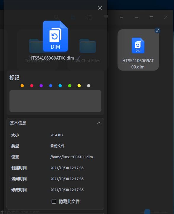 用移动硬盘里的deepin系统引导启动后,运行deepin-clone,备份“秒完成”,但是形成的*.dim文件,只有25.4KB,这是什么啊!