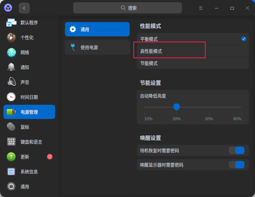 但是 uos 家庭版下 有 性能模式