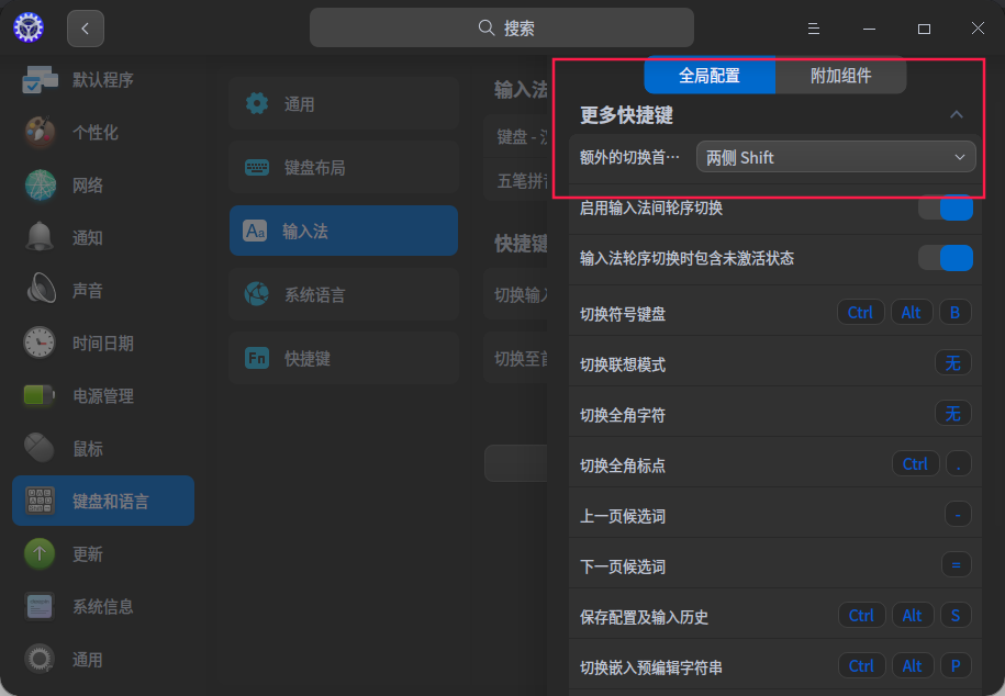 缺少设置 Shift 快速切换英文输入的功能?我以前也这样子认为。但是我发现不是这样子的,只是我以前不知道怎么设置。