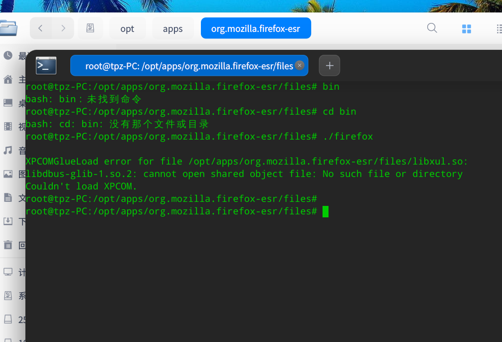 使用终端进入firefox安装目录的bin目录中,执行 ./firefox能看到具体错误