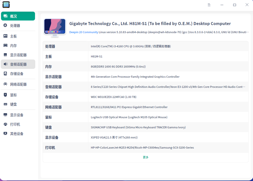 使用旧电脑安装最新deepin20.4版本,安装完成后打开系统“设备管理器”应用后截图(“概况”界面,展示电脑基础的硬件信息),将截图在本帖下回复。