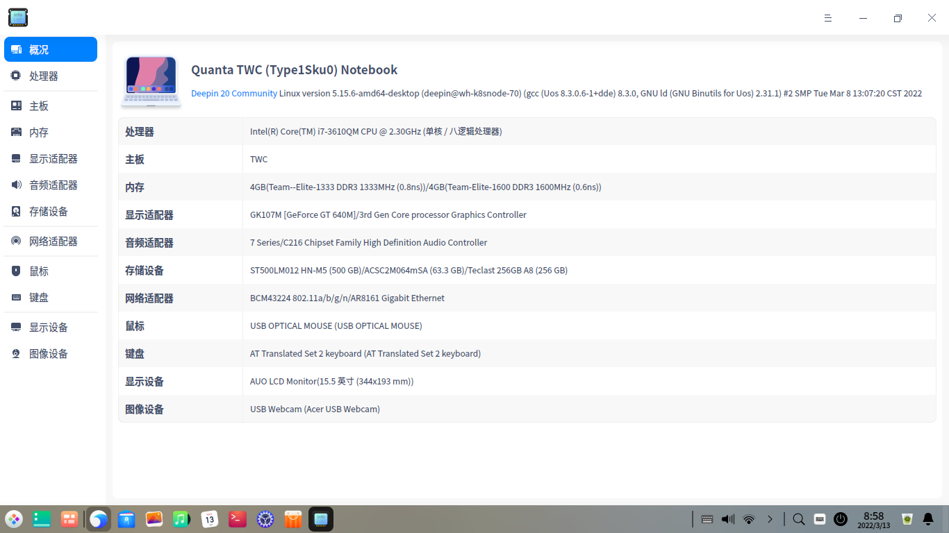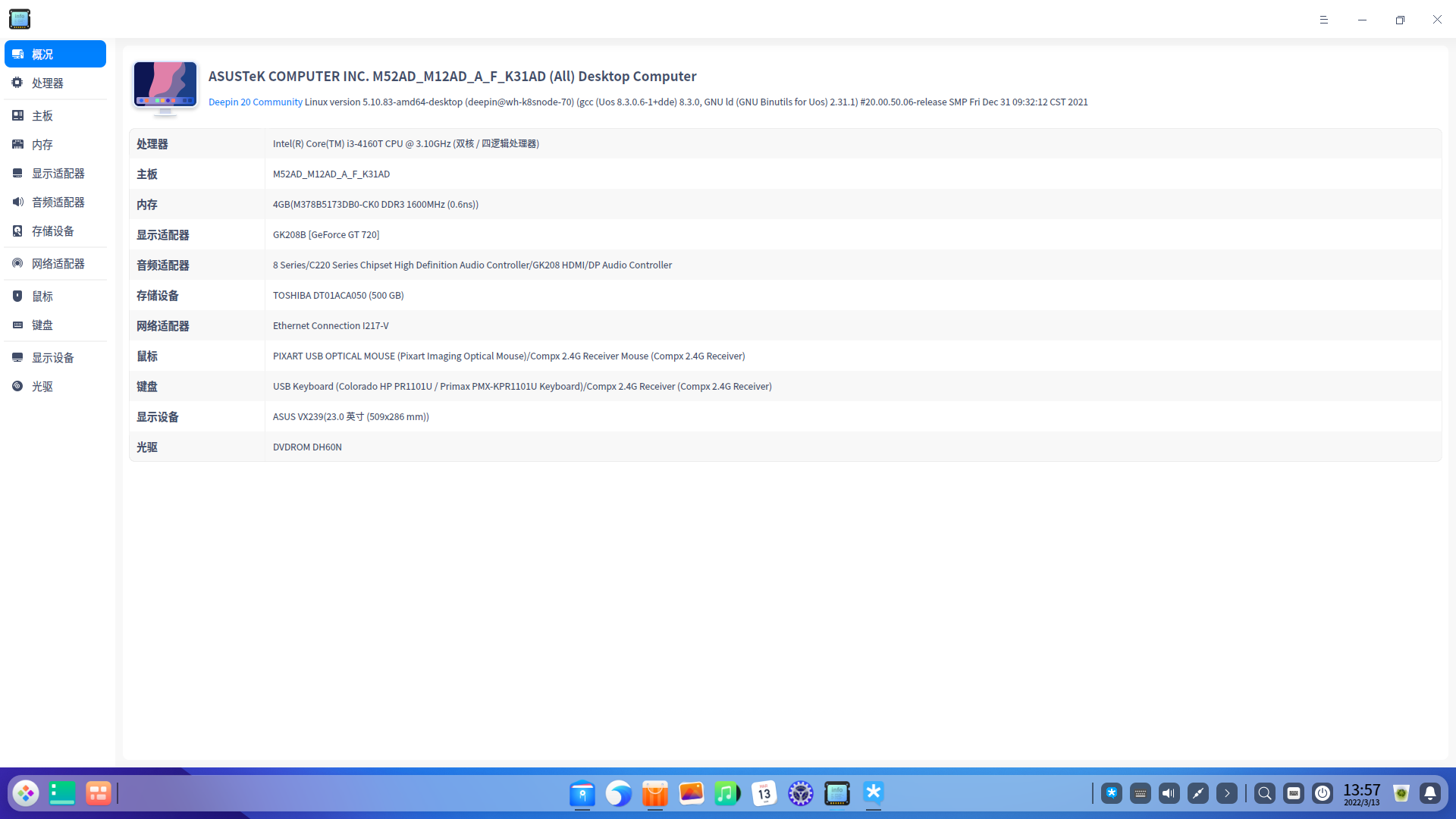 使用旧电脑安装最新deepin20.4版本,安装完成后打开系统“设备管理器”应用后截图(“概况”界面,展示电脑基础的硬件信息),将截图在本帖下回复。