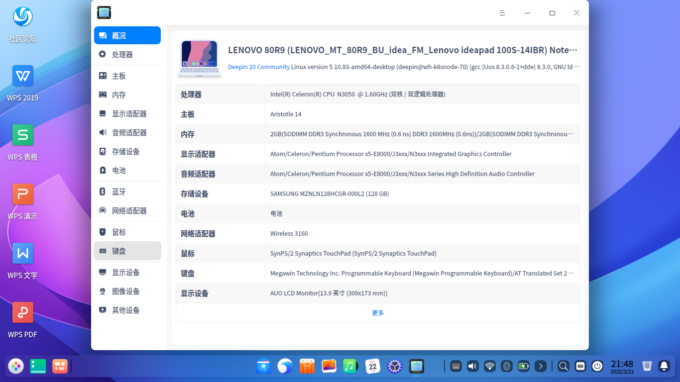 使用旧电脑安装最新deepin20.4版本,安装完成后打开系统“设备管理器”应用后截图(“概况”界面,展示电脑基础的硬件信息),将截图在本帖下回复。