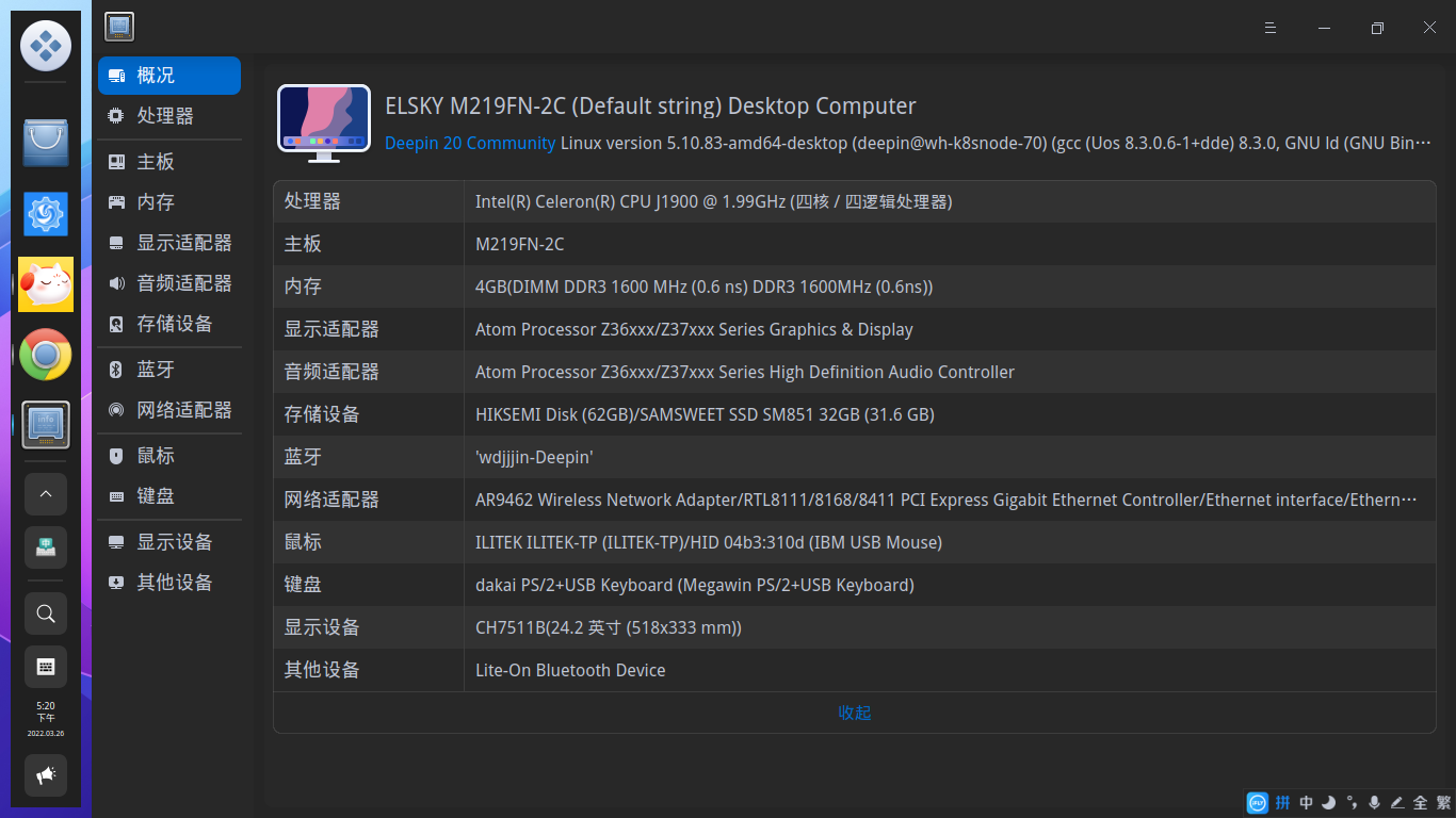 使用旧电脑安装最新deepin20.4版本,安装完成后打开系统“设备管理器”应用后截图(“概况”界面,展示电脑基础的硬件信息),将截图在本帖下回复。