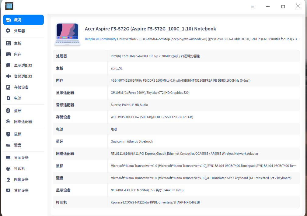 使用旧电脑安装最新deepin20.4版本,安装完成后打开系统“设备管理器”应用后截图(“概况”界面,展示电脑基础的硬件信息),将截图在本帖下回复。