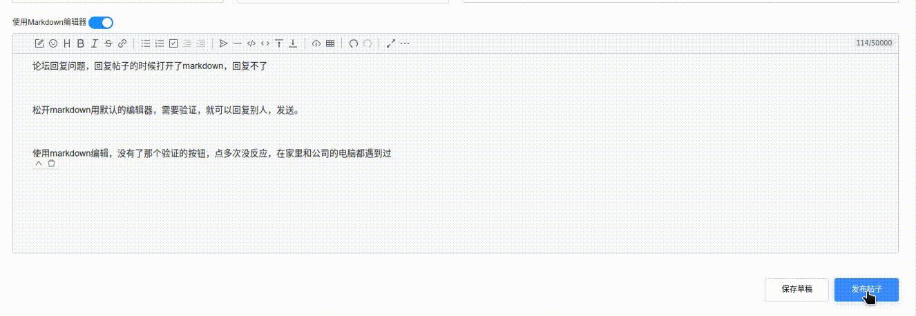 论坛回复问题,回复帖子的时候打开了markdown,回复不了