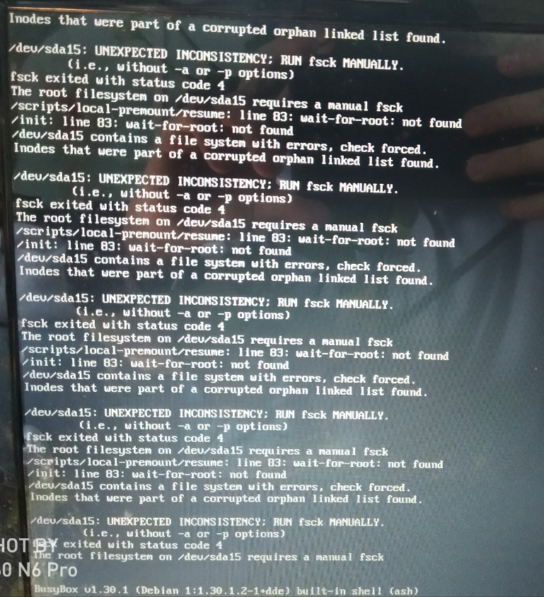 输入fsck空格/dev/sda15回车试试