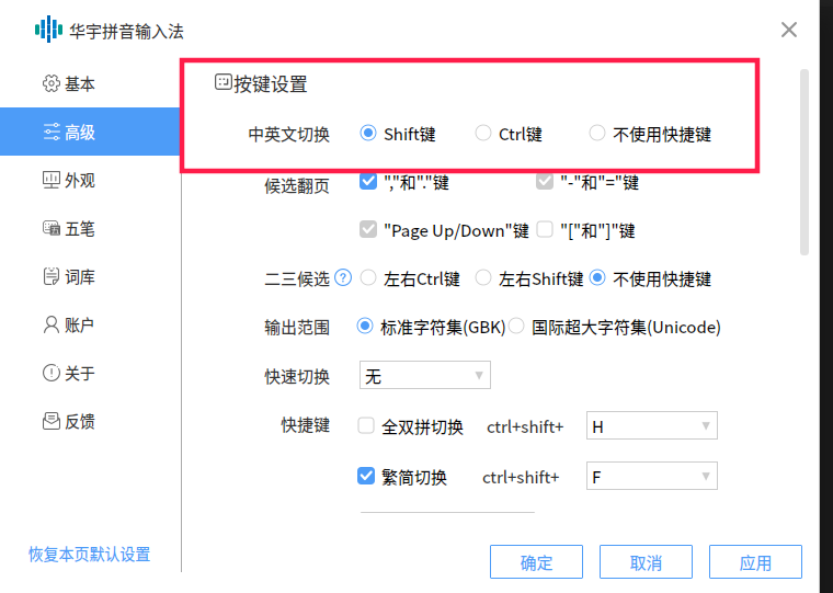 你这个设置是在管理器里头的输入法之间的切换,不是输入法本身的中英切换快捷,容易失灵,特别是讯飞输入法容易失灵。(目前用讯飞和华宇,其他输入法没下载使用过)