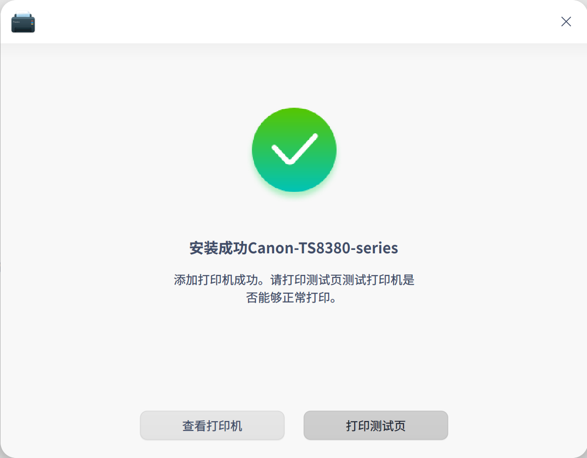 没有佳能Canon TS8380 网络打印机的驱动!能在网咯中找到打印机!但是提示安装失败找不到驱动!期待你们的更新!忠实平民用户!会一直支持你们加油国产系统!未来属于你们!