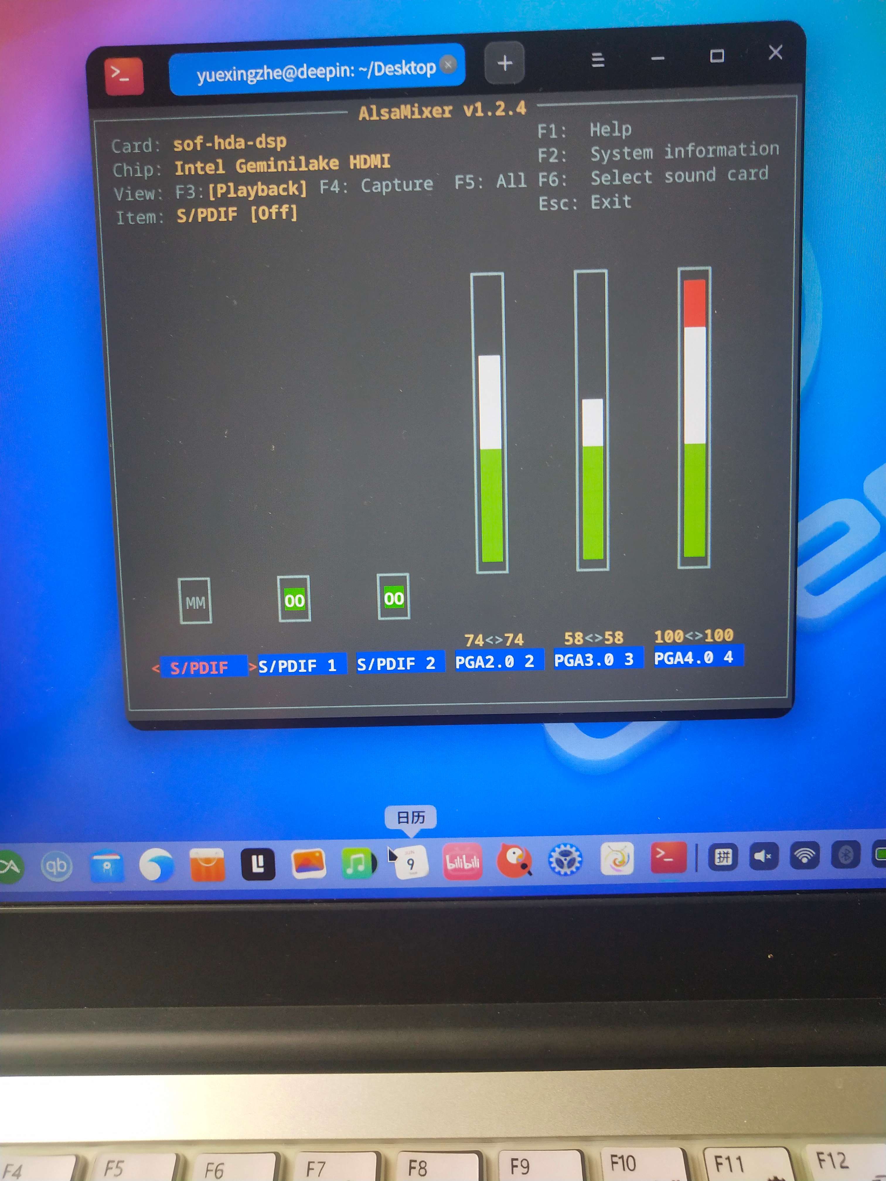 命令终端里输入alsmixer