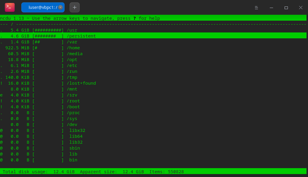 如果不指定目录, ncdu默认查看当前目录下的文件占用空间。