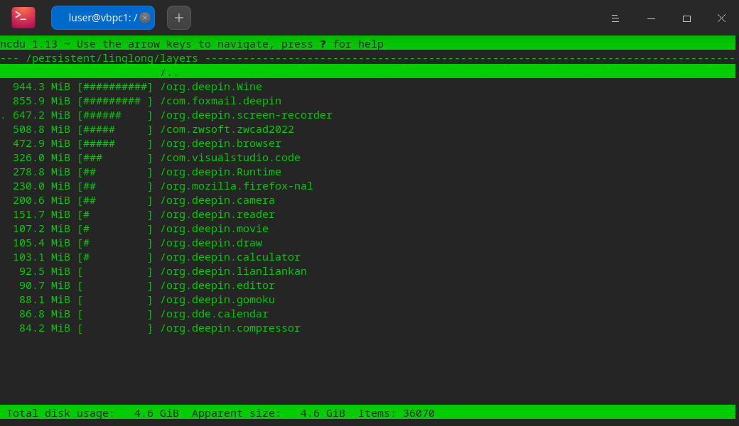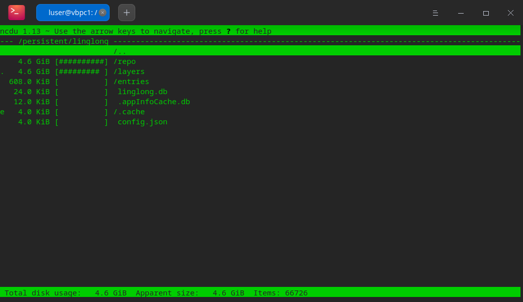 玲珑软件都在persistent-linglong-layers目录下,体积可不小哦。