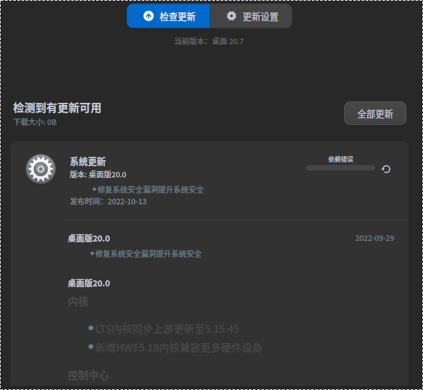 更新到了20.7了,但是桌面还要更新,又回到了这个依赖过不去了。