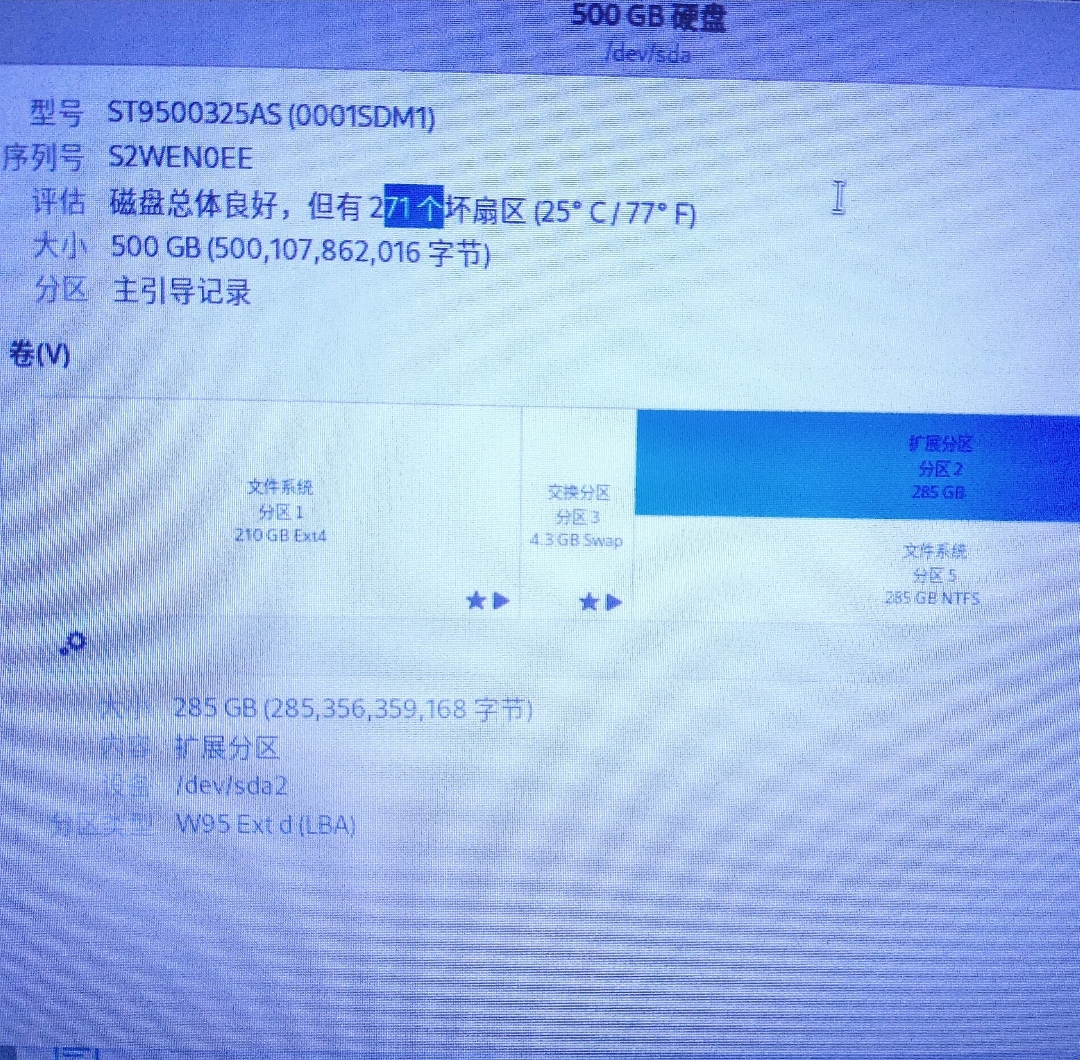 用着也没啥感觉,我的这个285为啥显示两个,一个分区2,一个分区5呢。硬盘工具里看也是265g。
