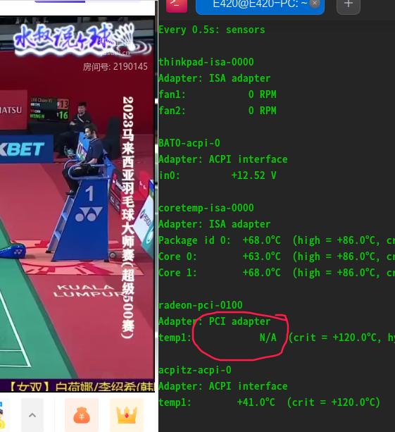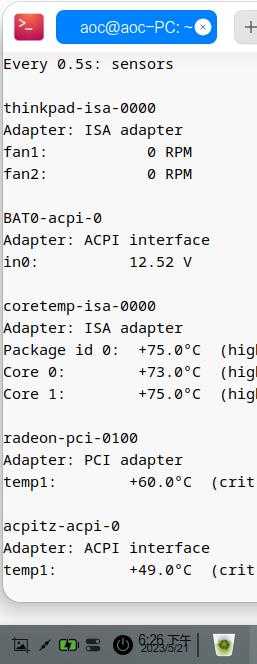 sudo apt-get install lm-sensors必须安装才能watch -n 0.5 sensors