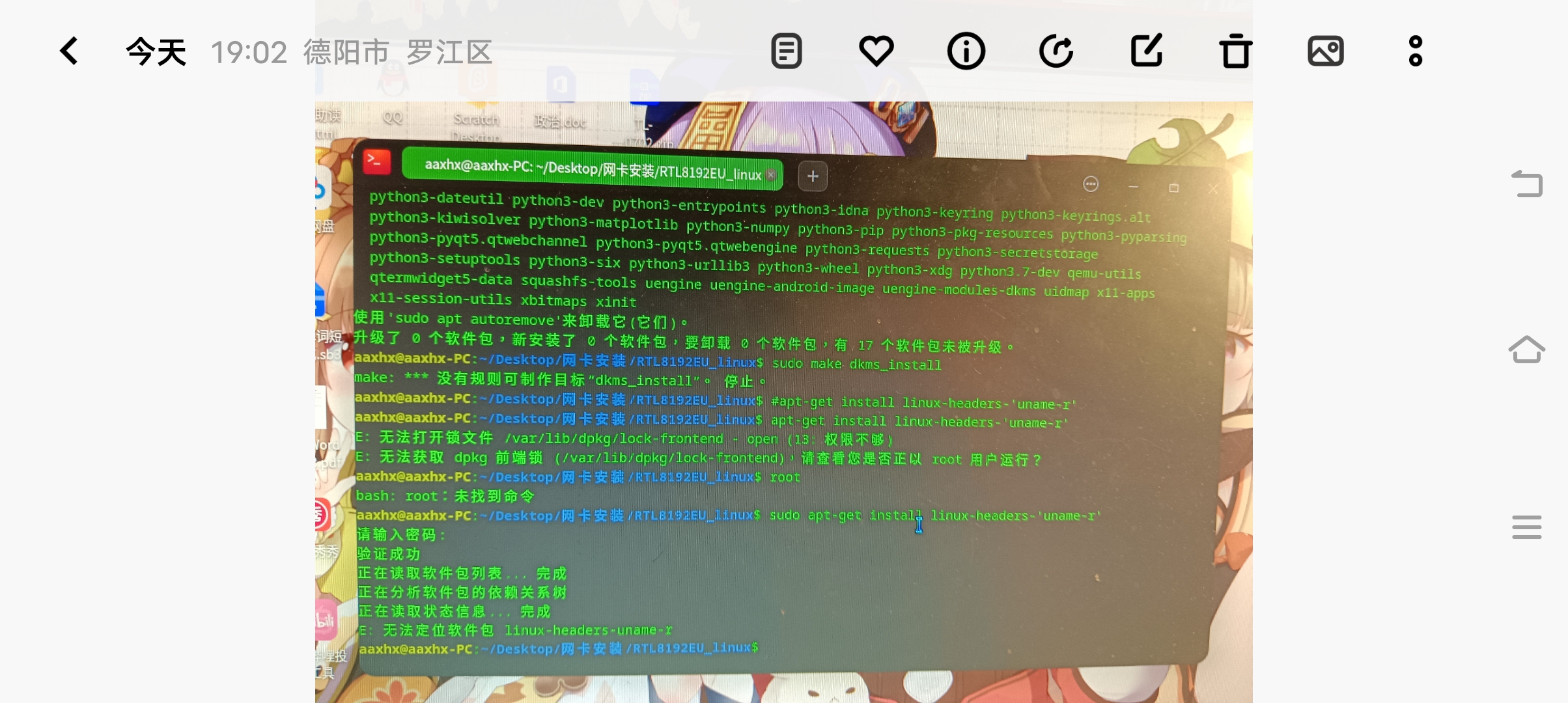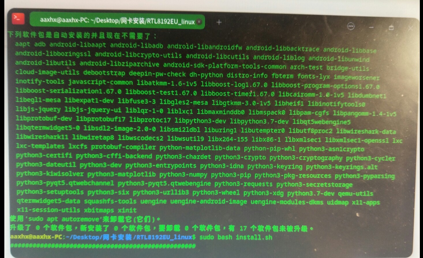 我看图片里显示网卡型号 rtl8192eu 什么的,常规来说,应该考虑的不是下载驱动源码,而是先试试安装这个包。