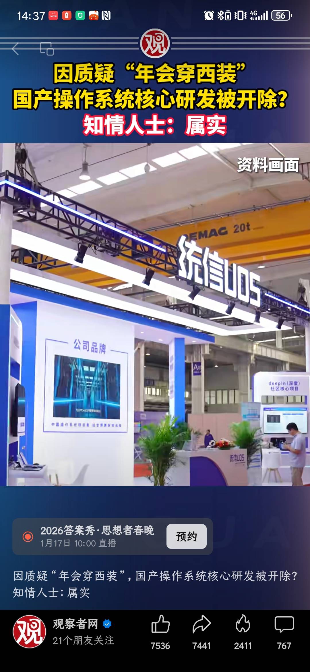 因质疑“年会穿西装”,国产操作系统核心研发被开除? 知情人士:属实