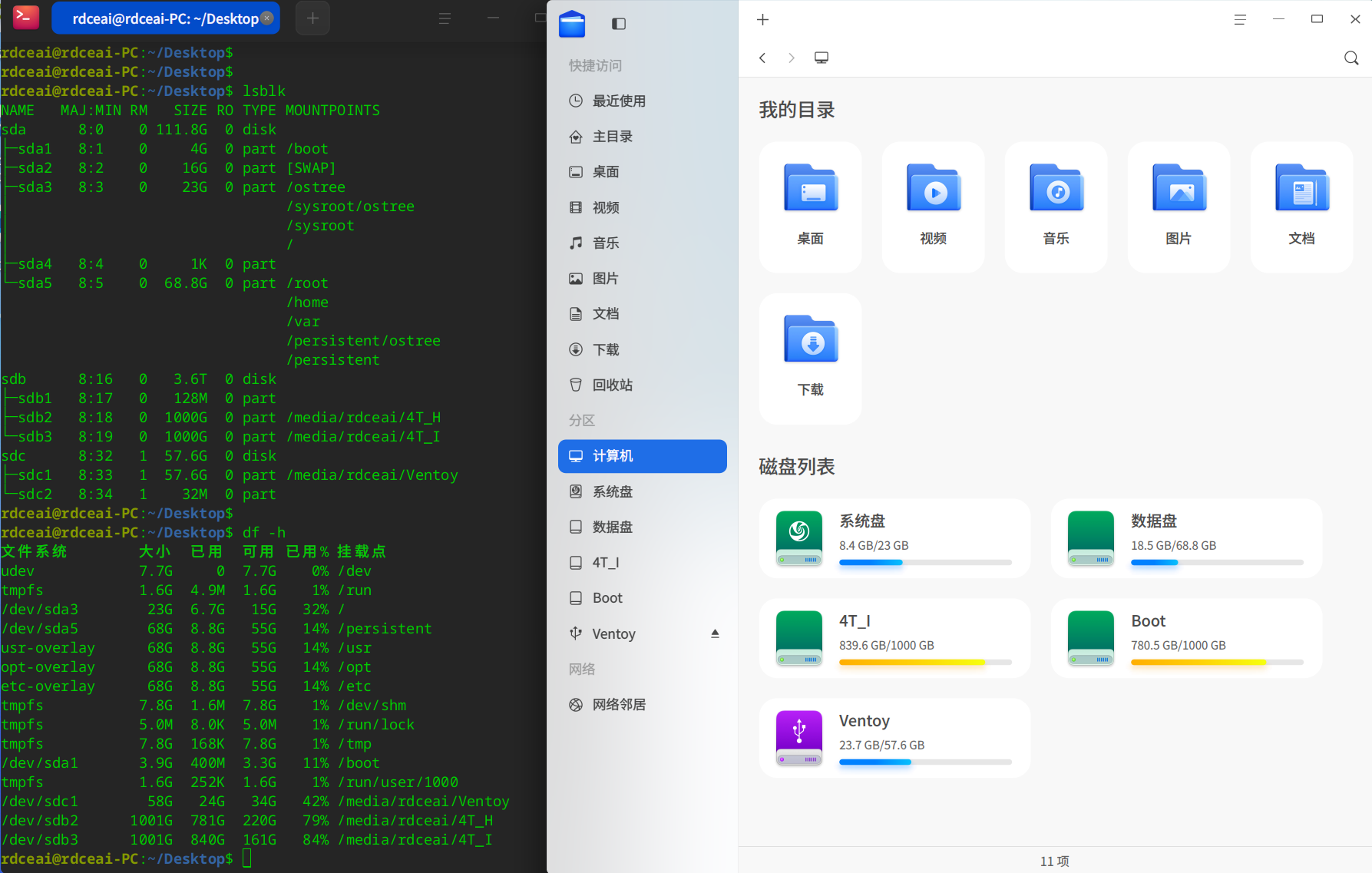 但在deepin-desktop-community-25.0.10-amd64的文件管理器中却只正确显示一个卷标,如上图,
