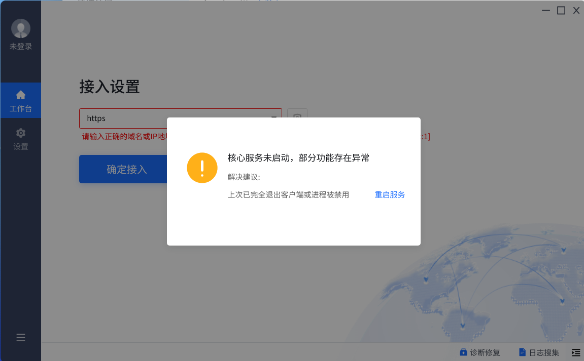 atrust 有UOS统信的版本BETA,下载安装后,提示“核心服务未启动,部分功能存在异常”