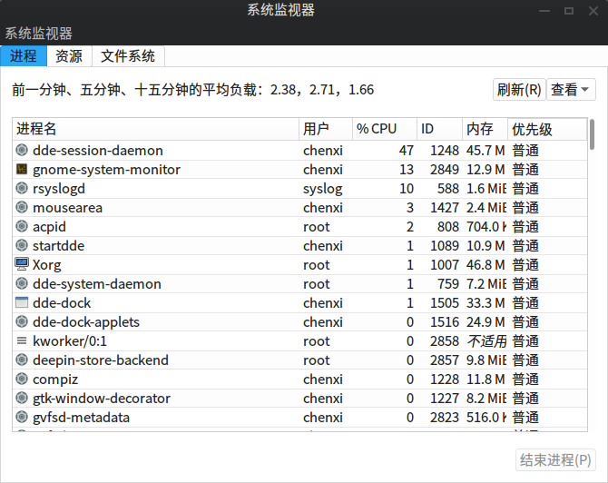 1、dde 进程占用达到 40%多 ,所有进程 占用 达到了 70--80%