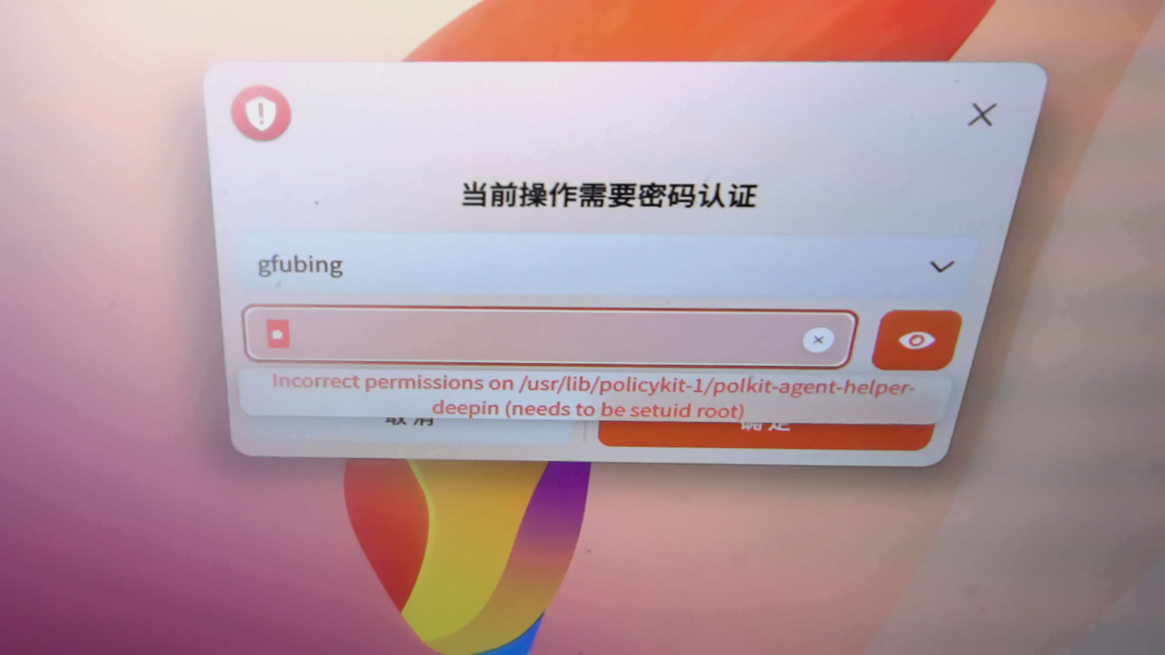 进tty,用root账户登录,权限修复chown root:root /usr/lib/policykit-1/polkit-agent-helper-deepin,添加 setuid 权限chmod4755 /usr/lib/policykit-1/polkit-agent-helper-deepin,重启。看是否解决。还无法解决,重新安装 polkit 相关包试试。sudo apt install --reinstall policykit-1 policykit-1-gnome。再不行重装系统=。=!