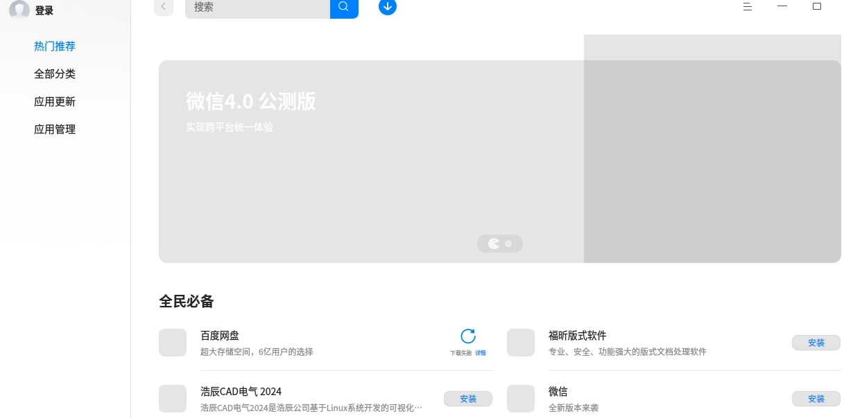 统信的应用商店就这毛病,几年了都不带改的,打开慢,动不动就登录不了,真不知道开发人员在干什么!