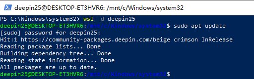 After installation, you can launch and manage your deepin 25 subsystem via PowerShell or CMD.