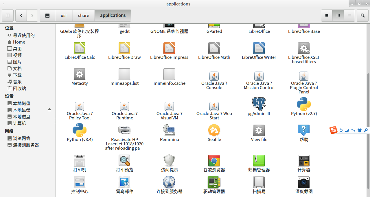 发现 usr/share/app 和 local 路径下 都没有 pycharm 的 ...